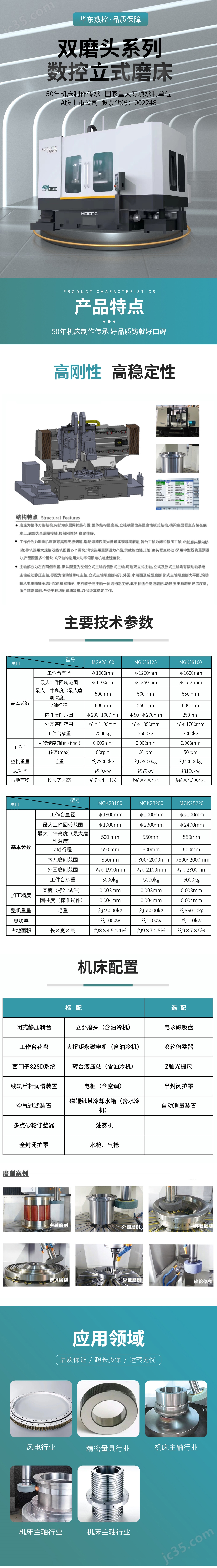 该系列机床采用先进、成熟的阶梯立壁式布局,可满足大型盘套类零件加工需求,可一次装夹完成内孔、外圆及端面磨削。机床设计具有高刚性的特点,可满足客户需求。横梁立柱为墙板式结构,垂直滑板为全行程支撑。预留多种主轴配置供选择,可满足不同零件的加工要求。