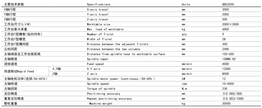 | 详细信息: 威达重工GDC2030龙门式钻铣中心 X、Y轴采用重载直线滚动导轨,Z轴采用硬轨,保证机床刚性。 中国台湾主轴单元,同步带减速传动,主轴扭矩大。 冷却系统采用大流量、高扬程水泵,保证刀具在高速切削下充分冷却。 GDC2030龙门式钻铣中心适用于法兰盘、大型阀门等零件的高速高效的钻削、铣削连续加工。 标准配置: 西门子828D 10把直排式刀库 链板式排屑器 选择配置: FANUC 0i MD系统 24把机械库 主轴系统配ZF箱 刀具内冷却功能 |