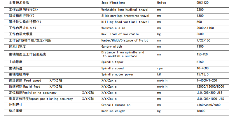 GMC1120性能特点: 机床基础采均采用优质高强度铸件,龙门式框架结构,整机具有良好的刚性、抗震性和精度保持性。