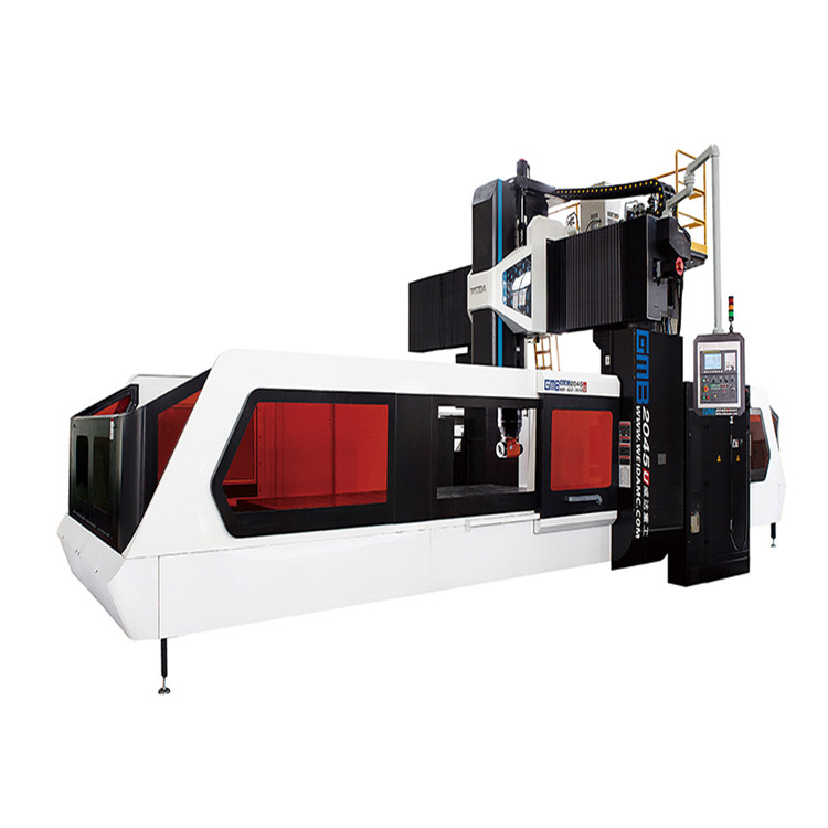 GMB2050u龙门镗铣加工中心基本结构为横梁固定式龙门框架,床身固定、工作台移动,铣头溜板沿横梁导轨左右移动,铣头滑枕沿溜板导轨垂直移动,实现三轴联动。