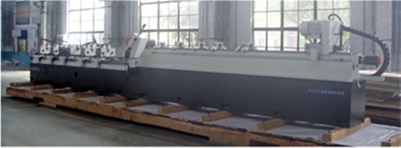 机床特点:1、床体及箱体均采用优质铸铁铸造,具有良好的刚性和稳定性。2、在钻削深孔过程中刀具中途无需退刀。3、采用数控系统控制,自动化程度高。4、进给运动由交流伺服电机驱动,滚珠丝杠副传动,可无级调速。5、采用滑动导轨,移动部件贴塑,低速运行平稳,无爬行。6、钻杆箱主轴可无级变速。7、主轴轴承及导轨面等均采用自动间歇润滑。8、高压冷却系统采用变频电机驱动齿轮泵,并采用浸入式油温控制器。9、采用自动排屑机排除切屑。10、配多组钻杆支架和特殊冷却系统,可满足长径比达到200:1的深孔加工。 |